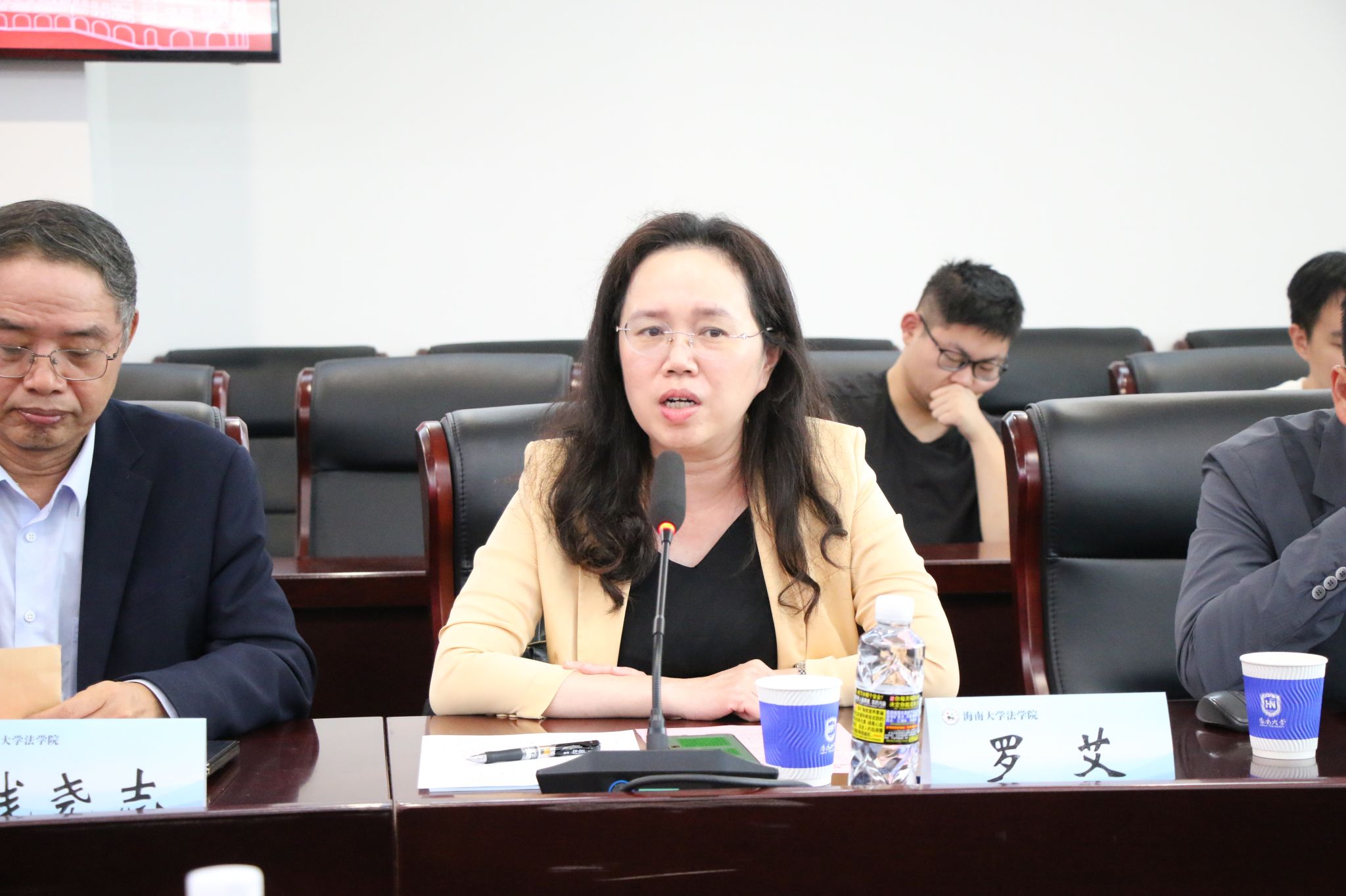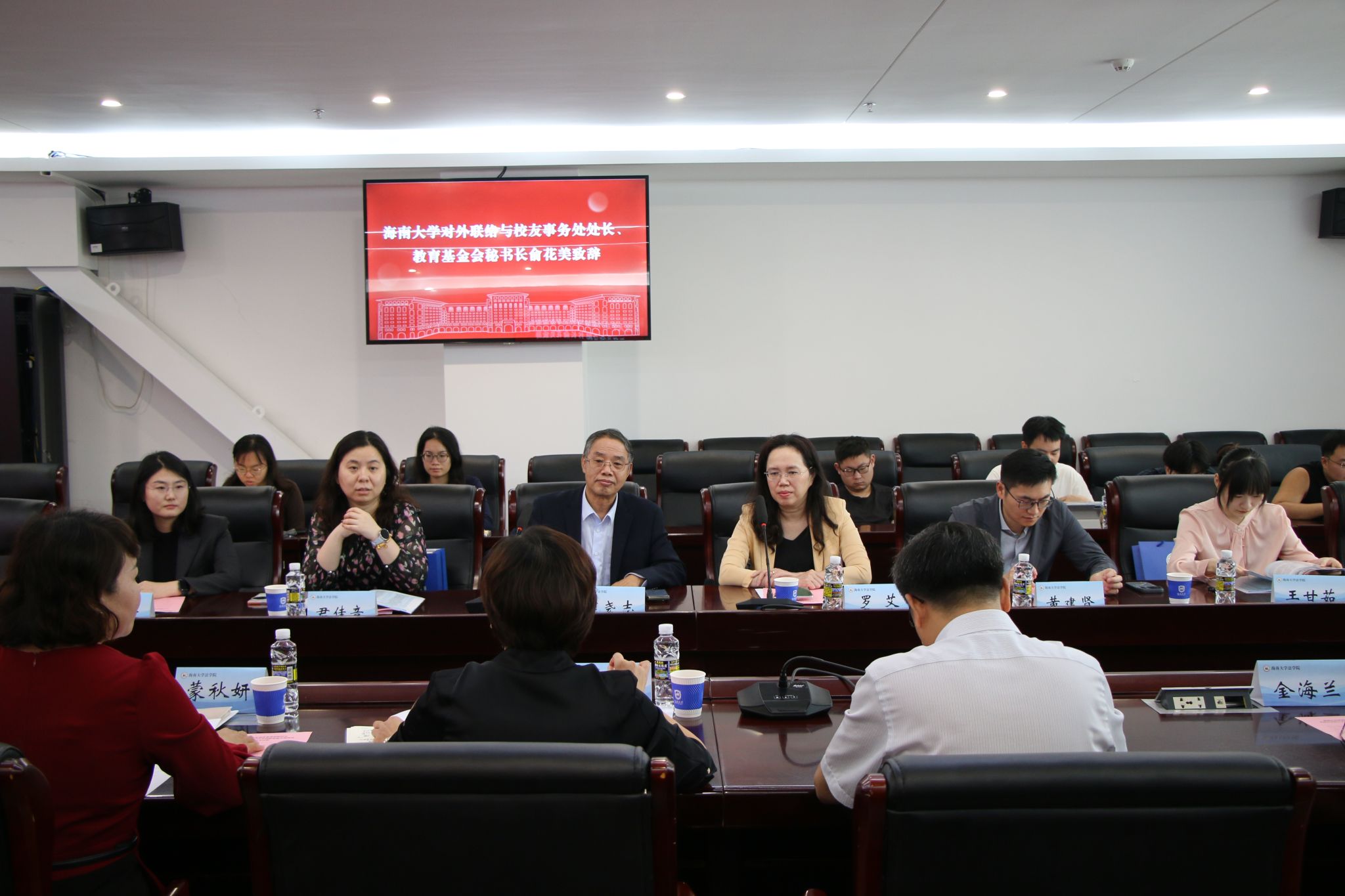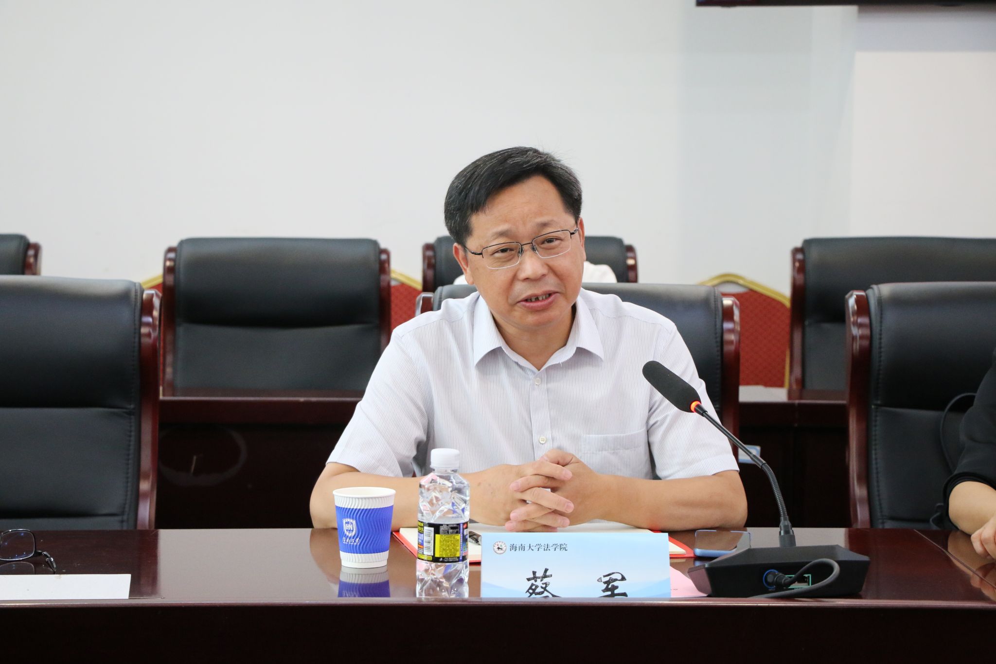 随后进入座谈交流环节,双方围绕海南自由贸易港制度集成创新研究、涉外法治人才培养、实务课程共建等方向展开深入研讨。蔡军在发言中指出,期待双方以“制度集成创新研究”与“涉外法治人才协同培养”为双轮驱动,深化产学研融合,共同打造特色鲜明、成效显著的校所合作典范,为自贸港法治建设提供人才支撑与智力支持。