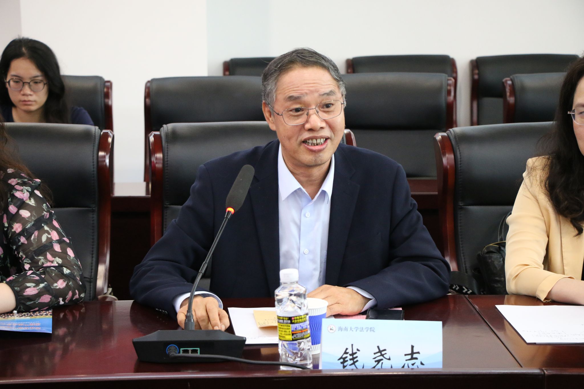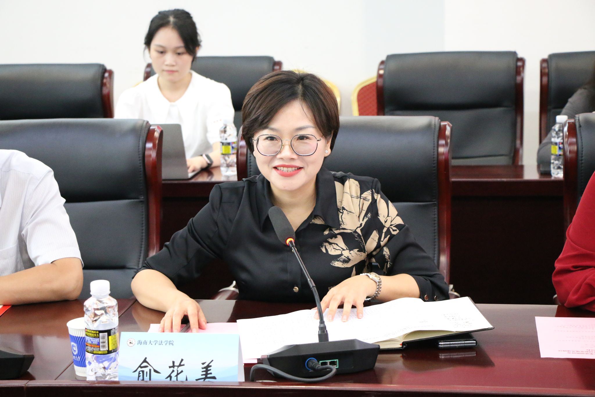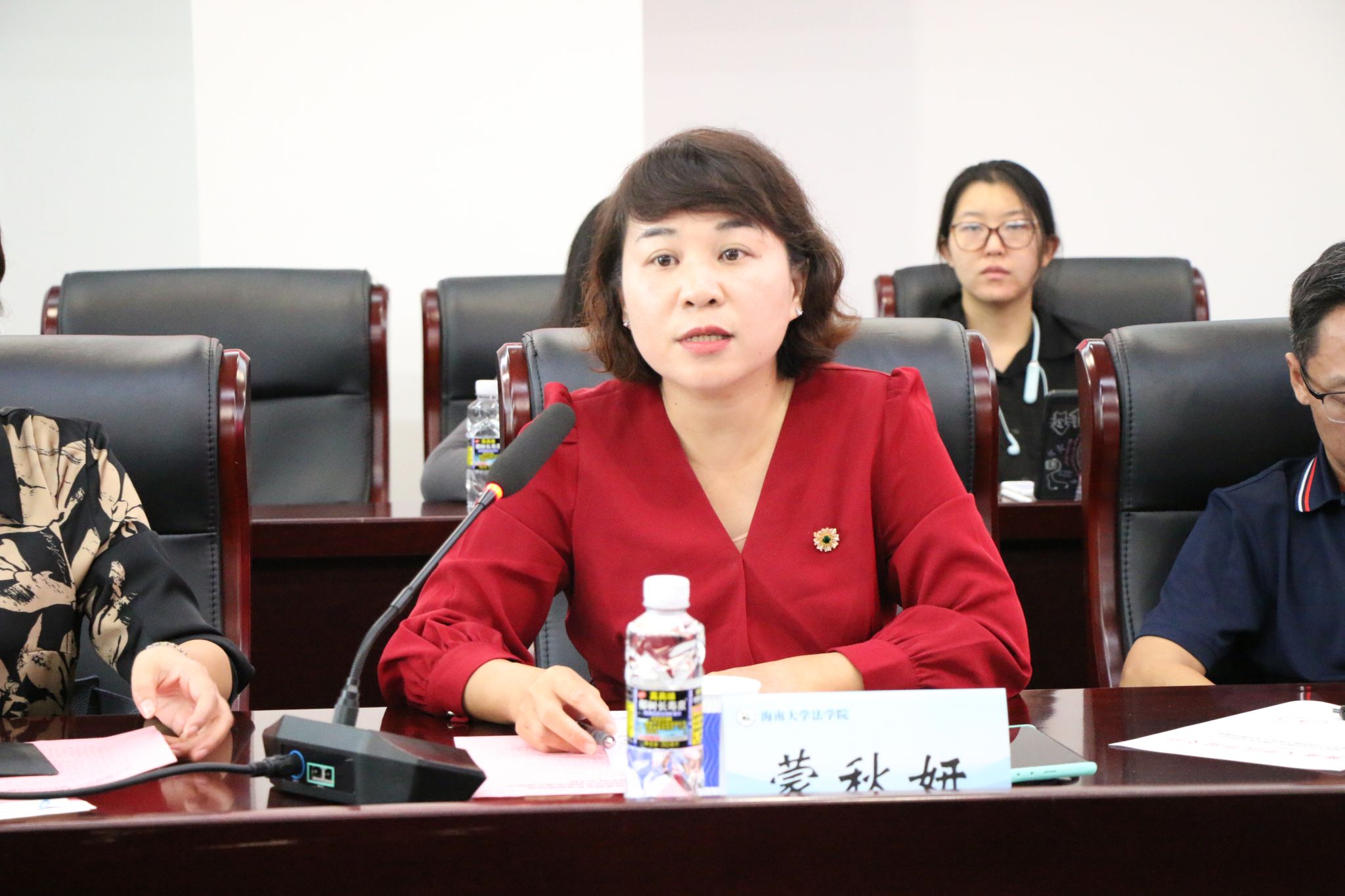 随后进入座谈交流环节,双方围绕海南自由贸易港制度集成创新研究、涉外法治人才培养、实务课程共建等方向展开深入研讨。蔡军在发言中指出,期待双方以“制度集成创新研究”与“涉外法治人才协同培养”为双轮驱动,深化产学研融合,共同打造特色鲜明、成效显著的校所合作典范,为自贸港法治建设提供人才支撑与智力支持。