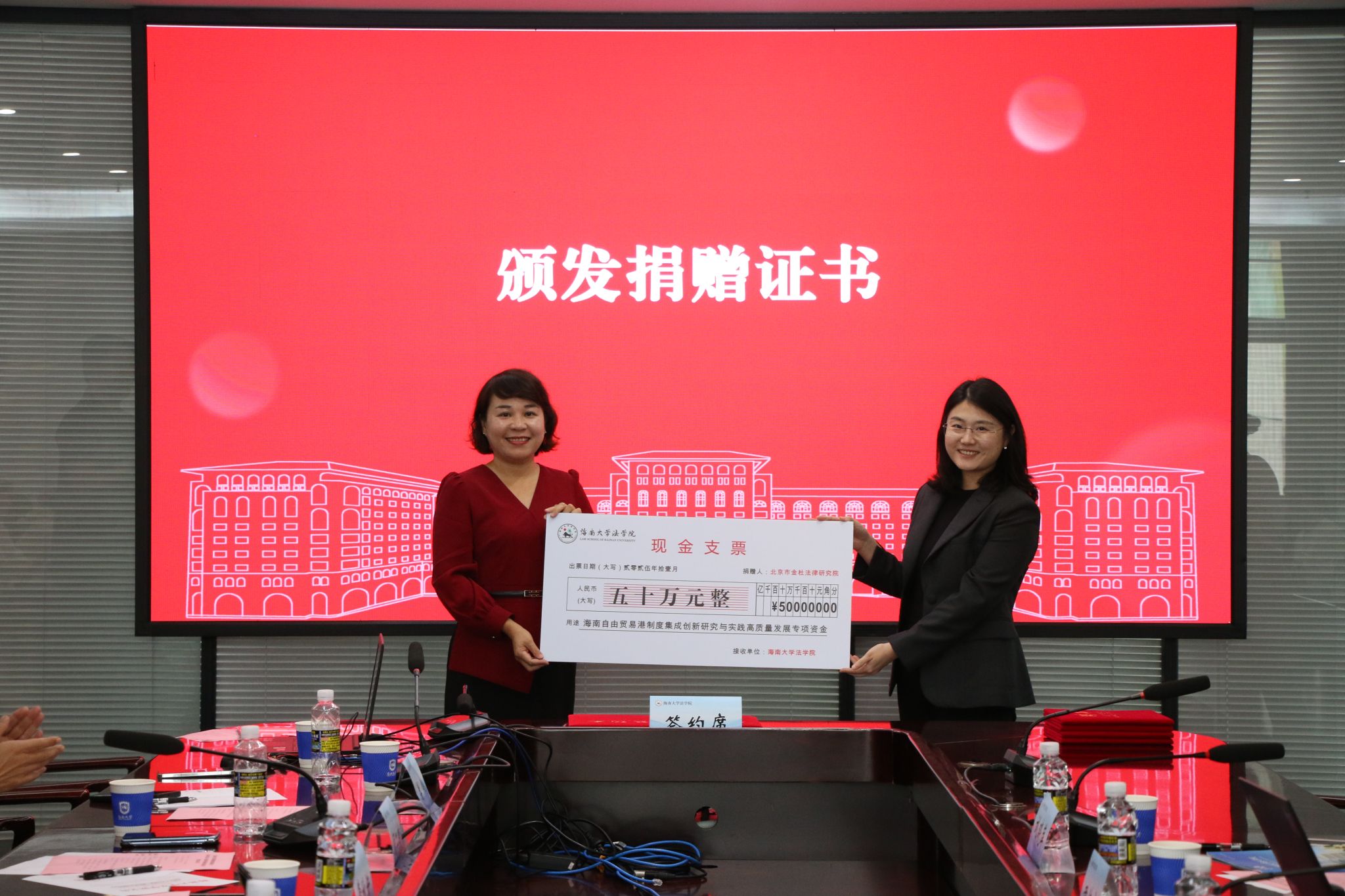 会上举行捐赠仪式,金杜律师事务所向必赢线路检测3003捐赠50万元,专项支持“海南自由贸易港制度集成创新研究与实践高质量发展”。